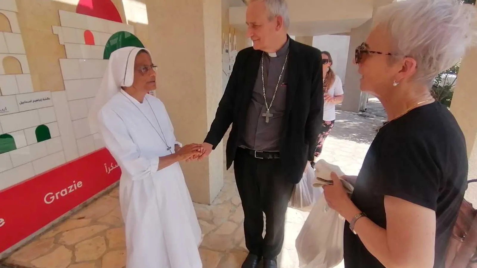 Zuppi con la directora del Charitas Baby Hospital de Belén