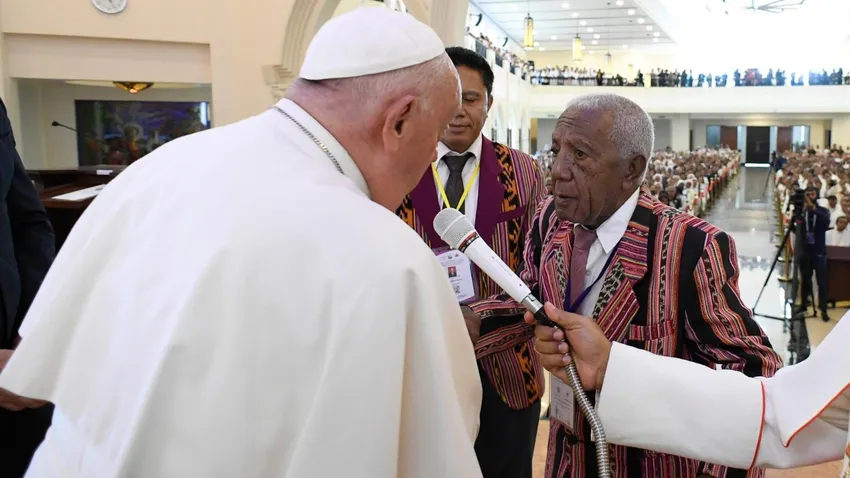 (Vatican News).- La vivacidad de la Iglesia timorense y las expresiones de gran afecto manifestadas al Santo Padre en esta tierra que ha sufrido tanto son de una calidez extraordinaria. La carga de testimonio cristiano, impregnada de la historia de Timor Oriental y relanzada por el discurso del Papa en la catedral, salió en diferentes estilos de sor Rosa Sarmento, de la Congregación de las Hijas de la Caridad Canossianas, del sacerdote diocesano Sancho Amaral y del catequista Florentino de Jesús Martins, de casi noventa años, que relató su experiencia eclesial antes del discurso del Pontífice en el Encuentro con los obispos, sacerdotes, consagrados, seminaristas y catequistas.