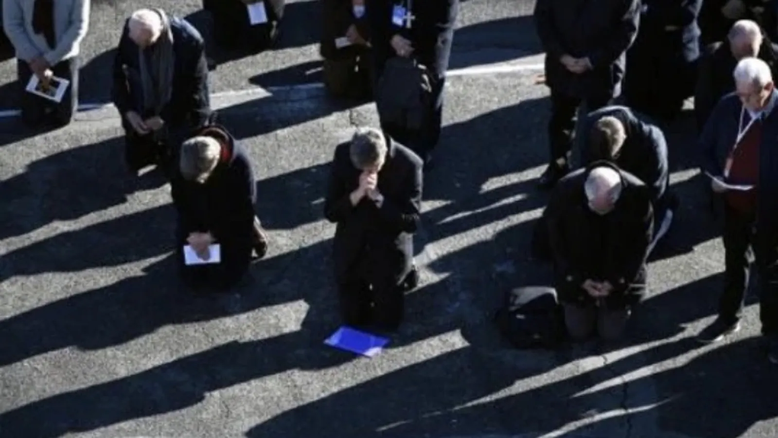 Más de 120 obispos acompañados por laicos participaron en una oración de penitencia, algunos de ellos arrodillados