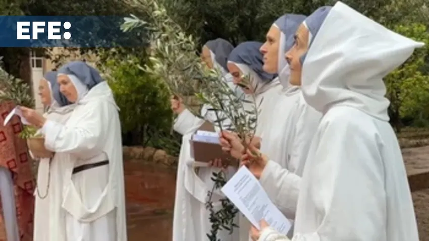 Las hermanas Karine y Alicia (Liesse Miryah de nombre monástico), encargadas del mantenimiento del monasterio, lo explican a EFE este Domingo de Ramos, en el que celebraron, como cada año, una pequeña procesión en torno al santuario que culminó con una misa interrumpida por una alerta por misiles.