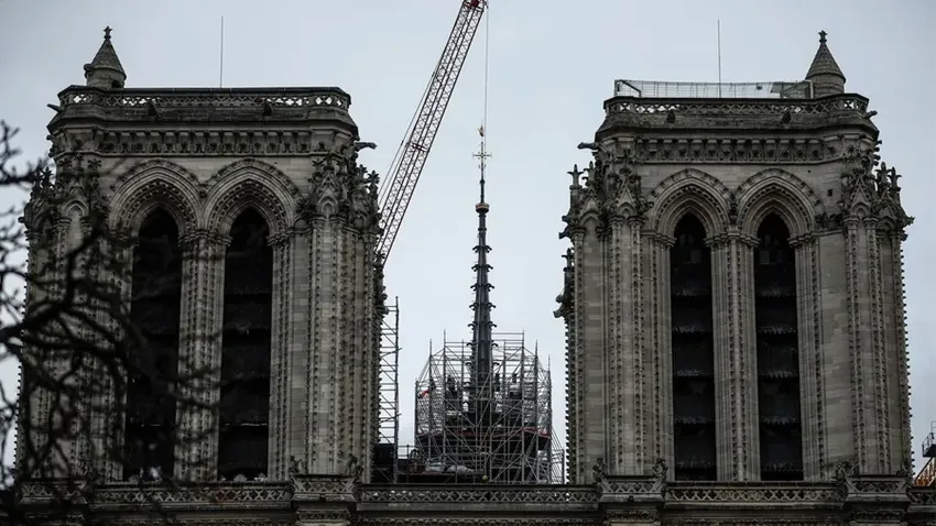 Las grúas retiran los andamios de la nueva aguja de Notre Dame