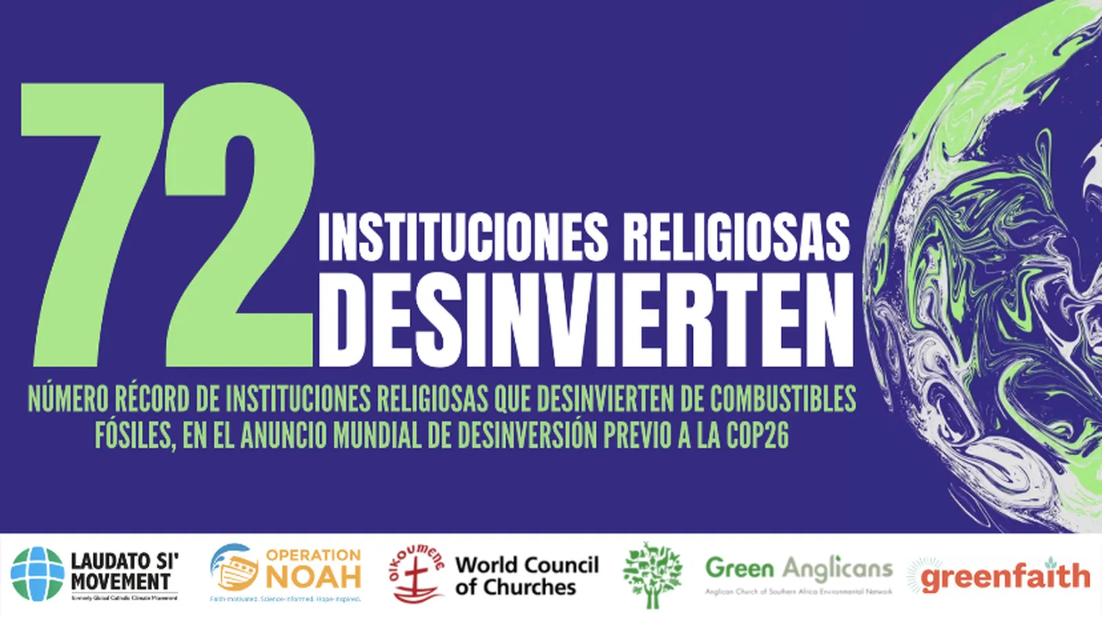 Hoy, cinco días antes de la Conferencia de las Naciones Unidas sobre el Clima, COP26, en Glasgow, y cuatro días antes de la Cumbre del G20 en Roma, 72 instituciones religiosas de seis continentes, con más de 4,2 billones de dólares de activos combinados bajo gestión, anuncian su desinversión de los combustibles fósiles en el mayor anuncio de desinversión conjunto realizado por organizaciones religiosas.