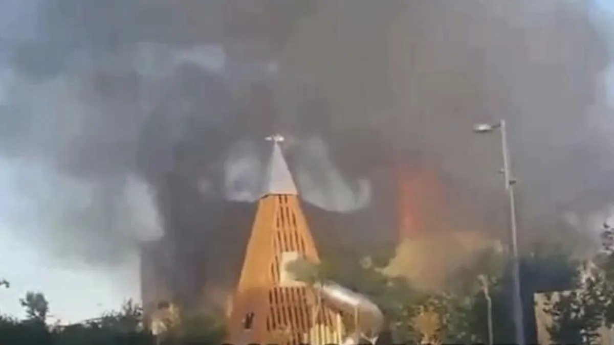 En la televisión pública rusa se difundieron imágenes de la sinagoga de Derbent envuelta en fuego y densas columnas de humo.