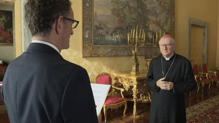 Un momento de la entrevista con el cardenal Pietro Parolin