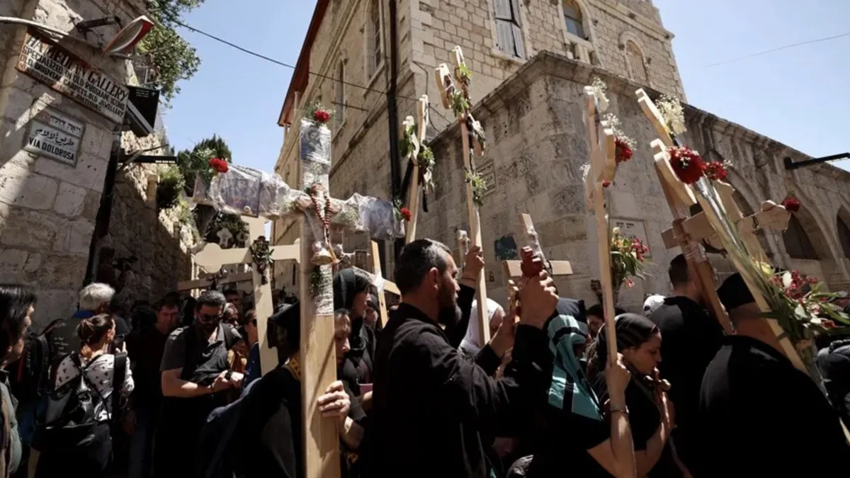 Pese a que las bombas israelíes siguen cayendo en Gaza, peregrinos locales y extranjeros no quisieron perderse este año la celebración del Viernes Santo en la Ciudad Vieja de Jerusalén, que ha contado con un amplio dispositivo de seguridad.