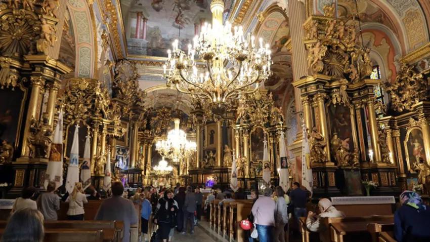 De acuerdo con la UNESCO, Leópolis fue fundada a finales de la Edad Media y conserva casi intacta su trama urbana medieval. La iglesia de San Andrés, situada en las inmediaciones de la Plaza Soborna, integra el conjunto religioso de los Monasterios Bernardinos.
