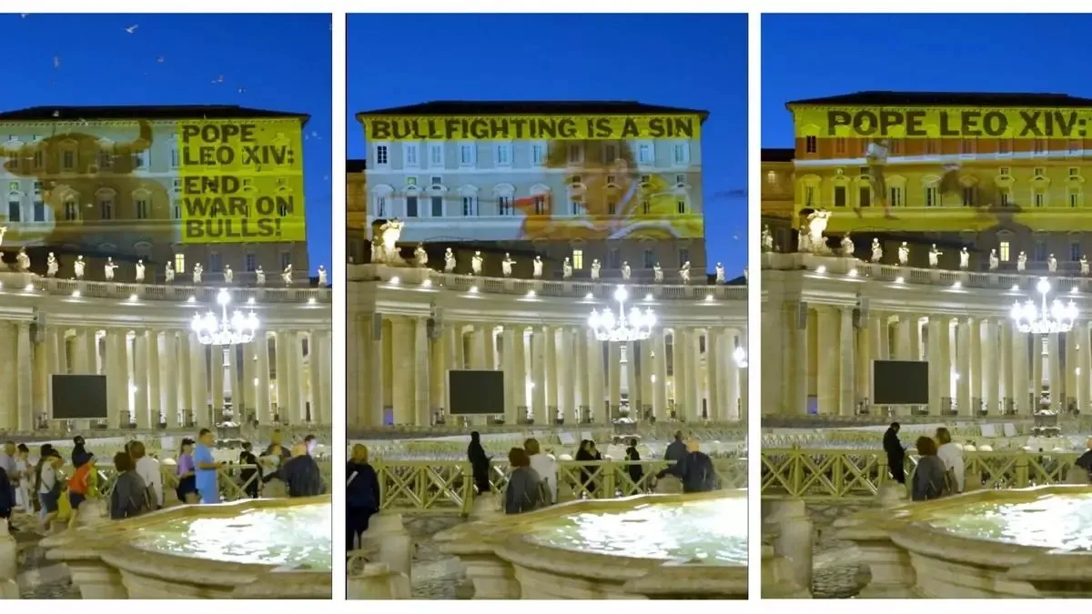 PETA ha colgado un vídeo en su cuenta de la red social X en la que se ven las proyecciones que han realizado sobre la fachada del Palacio Apostólico y en la que se suceden los mensajes para que León XIV condene las corridas de toros y en las que, entre otros, se puede leer en inglés que "la tauromaquia es un pecado".