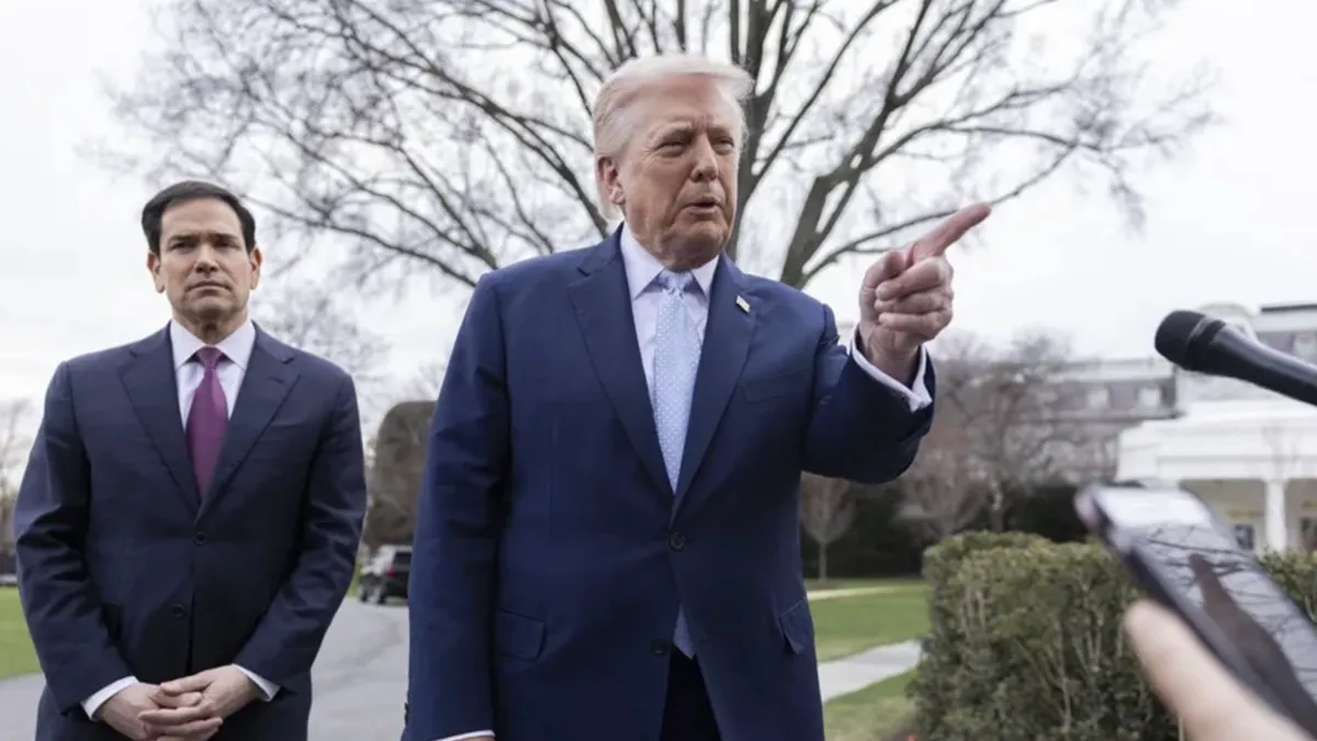 El presidente de Estados Unidos, Donald Trump (d), a su salida de la Casa Blanca, este 20 de marzo de 2026. EFE/Shawn Thew/Pool