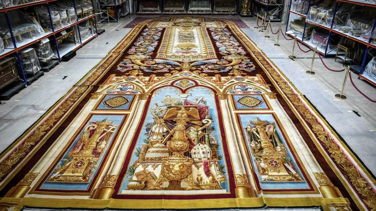 El enorme tapiz, terminado bajo el reinado de Luis Felipe en 1838, fue evacuado del monumento gótico pocos días después del incendio. Cuando se desató el incendio, se encontraba guardado en dos cajas que lo protegieron del plomo fundido y de la madera en llamas, pero había absorbido enormes cantidades de agua.
