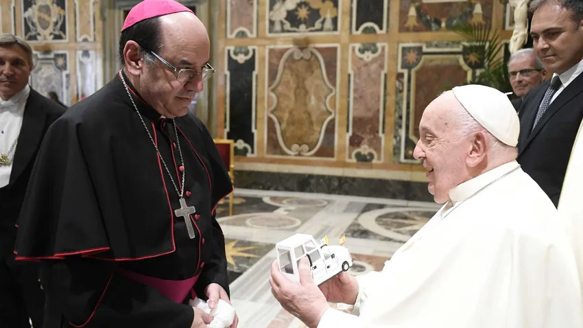 El Arzobispo de Pamplona entregó recientemente un detalle de un preso al Papa en Roma