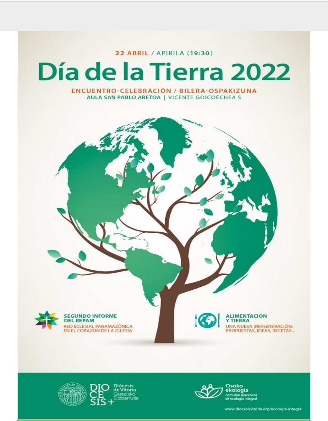 Este viernes 22 de abril se celebra el Día Internacional de la Tierra. Por ello, la Diócesis de Vitoria, a través de la Comisión Diocesana de Ecología Integral, ha organizado un encuentro con el objetivo de analizar cómo está afectando al ecosistema nuestra forma de alimentarnos y de producir alimentos. “La salud del planeta se está resintiendo por los modelos de producción actuales y por la falta muchas veces de conocimiento real sobre el deterioro que podemos causar a nuestro alrededor”. Luis Antonio Preciado, sacerdote responsable en la Diócesis de temas de ecología y director del Secretariado Social, invita con esta incitativa a que “pensemos que la salud del planeta empieza por nuestro hogar, por nuestra forma de alimentarnos y por un consumo responsable”, Así se expresó al inicio del acto que tuvo lugar en el Aula San Pablo.