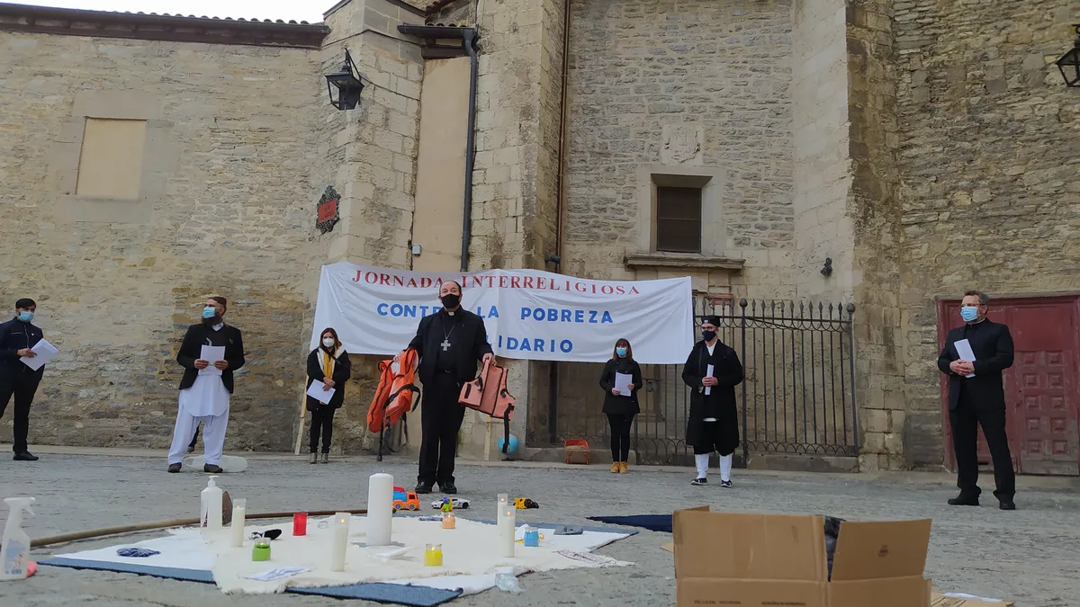 Unos minutos antes, Juan Carlos Elizalde junto a otros representantes religiosos había participado en un acto interreligioso de denuncia que tuvo lugar en la Plaza del Machete, en pleno Casco Viejo de la Ciudad. Un lugar simbólico al ser un espacio vinculado con la justicia. Formando un círculo en torno a una vela se dió lectura, en euskera y castellano, a un manifiesto (texto íntegro al final) en el que denuncian “Todas las formas de pobreza, sus causas y sus consecuencias, agravadas por la situación de la Covid-19, y que van mostrando nuevas y mayores desigualdades sociales”. Incluye varias propuestas para solucionar esta situación y una batería de compromisos a los que invitan a sumarse.