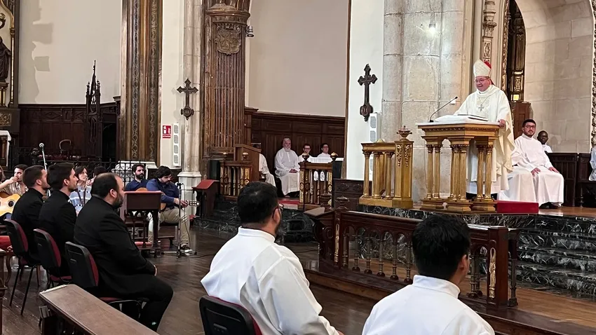 Luz y color, y sevillanas para la mañana y solemnidad para la tarde. La gazte mesa de San Miguel se llenó en esta ocasión para celebrar la ordenación de dos seminaristas de las órdenes menores de lectorado y acolitado, Luis Méndez y Ariel González, y para la admisión de otros tres seminaristas a las órdenes sagradas, Andrés Etxezarreta, Miguel Hermoso de Mendoza y Adriá Muñoz Escudé .