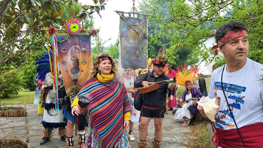En pleno valle de la Sakana, a los pies de la Sierra de Aralar, un grupo de personas ataviadas con plumas, ponchos y pañuelos, acompañadas de instrumentos de cuerda y al son de ritmos ancestrales danzaban y cantaban en círculo.