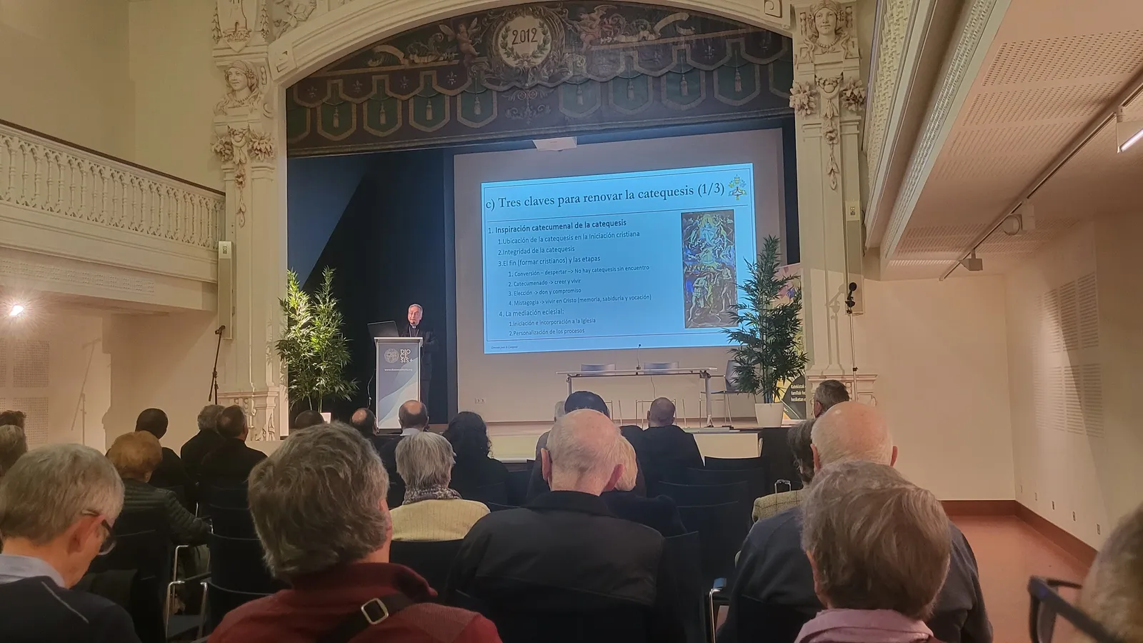 Desde la delegación de catequesis y primer anuncio de la Diócesis de Vitoria se están organizando diversas actividades formativas. En ese marco se incluye la presentación que ha tenido lugar este pasado jueves del nuevo catecismo de adultos. El Aula San Pablo registró un respetable aforo con la presencia de sacerdotes y catequistas en su mayoría.