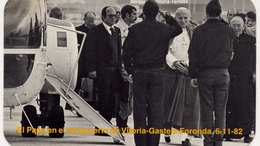 Juan Pablo II estuvo en esta tierra coincidiendo con su visita a España en 1982. Juan Pablo II pisó suelo alavés en su llegada al Aeropuerto de Foronda, camino del Santuario de Loyola, en la que sería su primera, y única visita, al País Vasco.