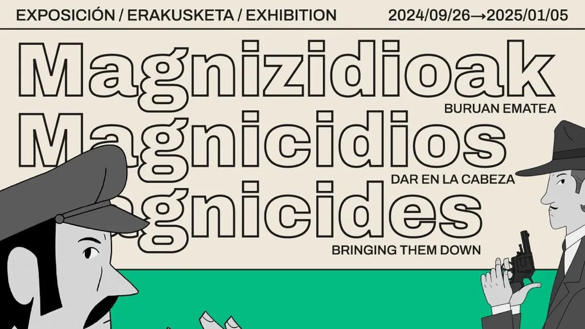En la mañana de el 26 de septiembre se ha inaugurado la exposición “Magnicidioak, buruan ematea/ Magnicidios, dar en la cabeza/Magnicides, bringing them down” Un trabajo que recoge una parte de la historia de los grandes magnicidios, con especial atención a los cinco que ocurrieron en el escaso periodo de cien años (1970-1973) con los cinco presidentes de gobierno español asesinados: Prim, Cánovas, Canalejas, Dato y Carrero. Unos paneles muestran el marco en el que fueron cometidos estos asesinatos y su contexto histórico.