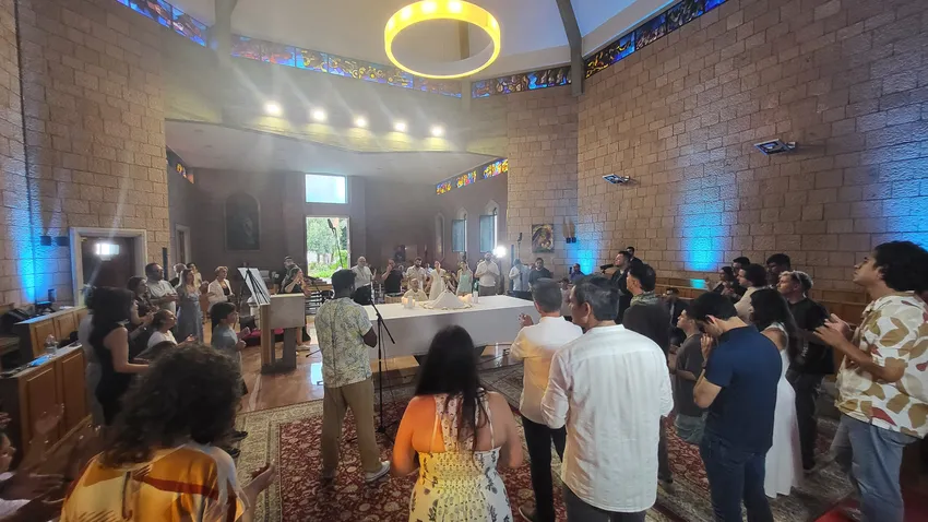 Tras la presentación de casi todos los presentes en la sala Guglielmo Marconi, que recientemente ha sido remodelada pero en el mismo espacio donde Marconi hizo sonar por las ondas la voz del Papa Pío XI, entonaron todos una canción de oración.