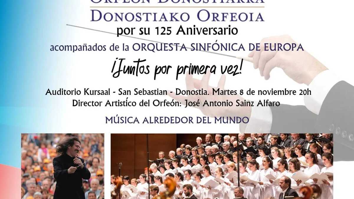 El próximo martes 8 de noviembre tendrá lugar en el Kursaal de San Sebastián un concierto que servirá de homenaje al Orfeón Donostiarra, quien actuará junto con la Orquesta Sinfónica de Europa y todos ellos dirigidos bajo la batuta del maestro Luis Cobos, promotor de este evento. Con este concierto se celebran los 125 años de creación de este grupo coral que ha llevado la música coral a diversos rincones del mundo.