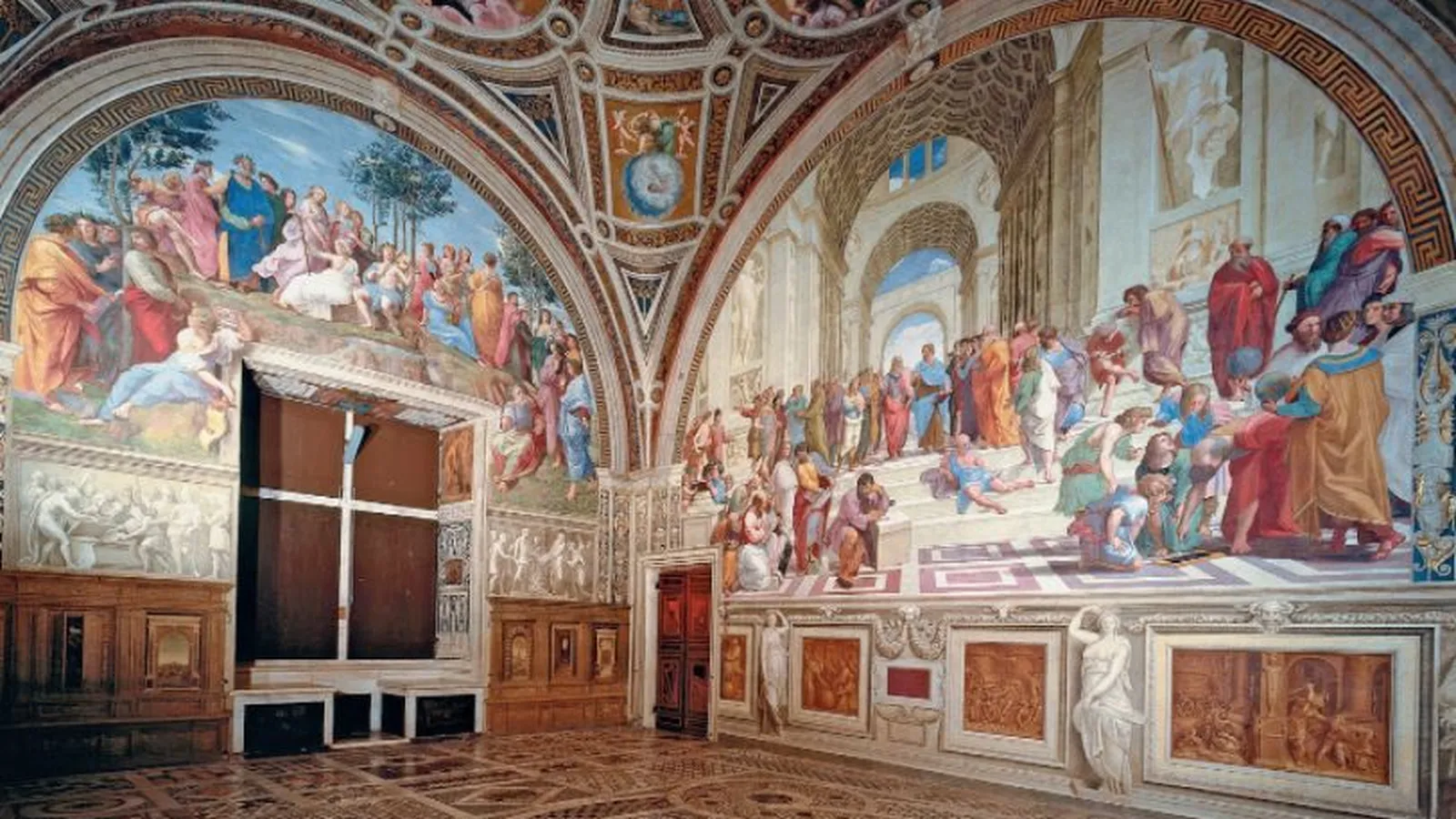 La sala VIII de la Pinacoteca Vaticana está, por lo tanto, completamente renovada. Los suntuosos tapices rafaelianos que representan los Hechos de los Apóstoles, hábilmente restaurados y equipados con una nueva y eficaz iluminación, pueden finalmente dialogar con las tres magníficas pinturas del divino Rafael, enmarcadas por los "redescubiertos" marcos de oro.