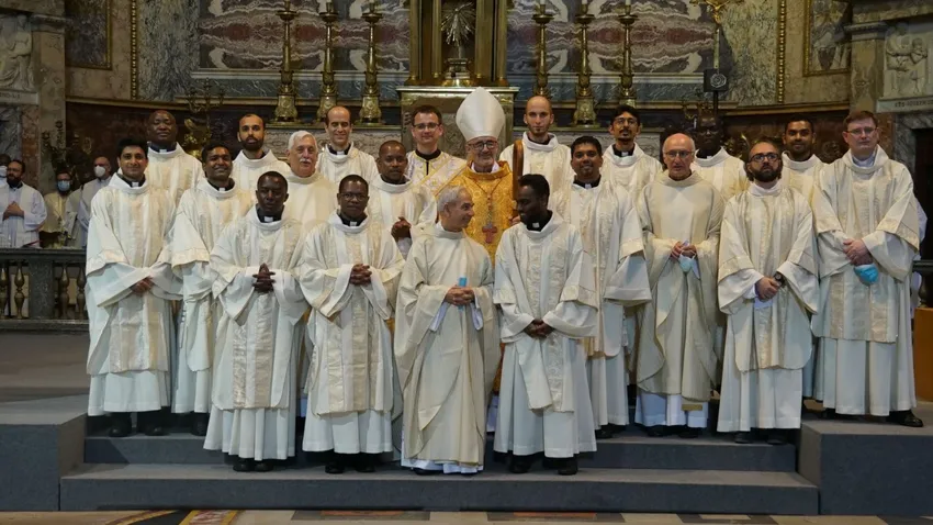 En esta ocasión, tuve la alegría y el honor de ordenar, en la Iglesia del Gesù en Roma, a dos sacerdotes y dieciocho diáconos jesuitas de todo el mundo —desde Italia, República Checa, Hungría, Eslovaquia, Ucrania y Austria hasta Ruanda, Burundi, República Democrática del Congo, Madagascar, Sri Lanka, China, Bangladesh e India— portando mascarillas y conectados en línea con padres, familiares, amigos y compañeros jesuitas. La presencia física no fue posible, ya que Italia aún se recupera lentamente de esta crisis sanitaria; las fronteras siguen cerradas y las restricciones para viajar, vigentes.
