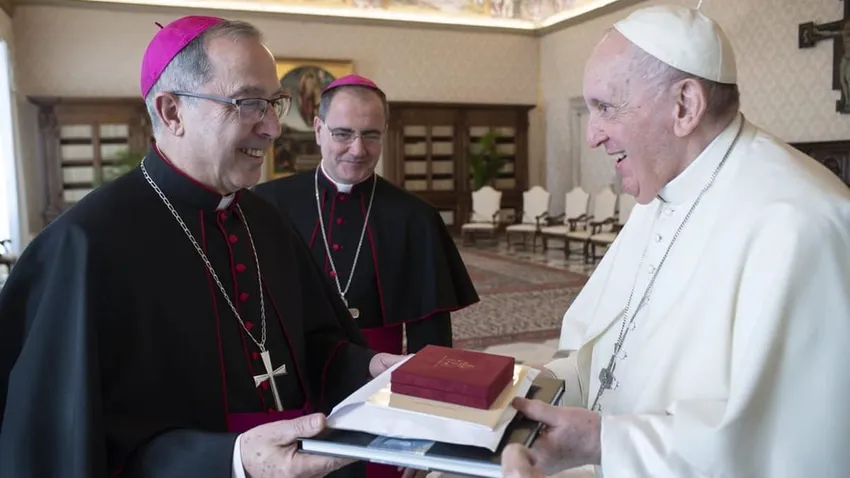 El obispo de Zamora, Fernando Valera, con el papa Francisco en el Vaticano