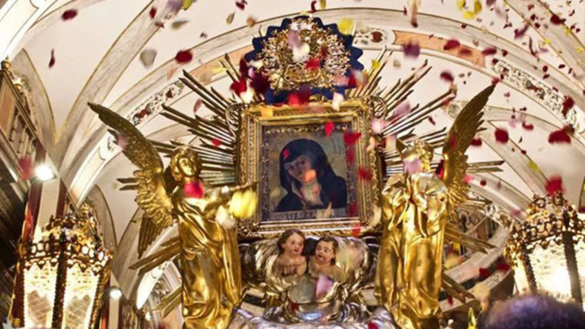 Según la tradición (evidentemente incompatible con el origen medieval del icono) el rostro de Santa María fue pintado por el evangelista San Lucas. Según esta creencia, esta tabla estuvo en Jerusalén hasta el siglo V, cuando la emperatriz Aelia Pulqueria la trasladó a Constantinopla, donde le dedicó una basílica. En el siglo XV, Gregorio Bassarion, Patriarca de Constantinopla, viendo que la santa imagen podía ser profanada por los turcos y por los herejes, la trasladó a Roma, y se la regaló al papa, según escribió fray Agustí Arques.