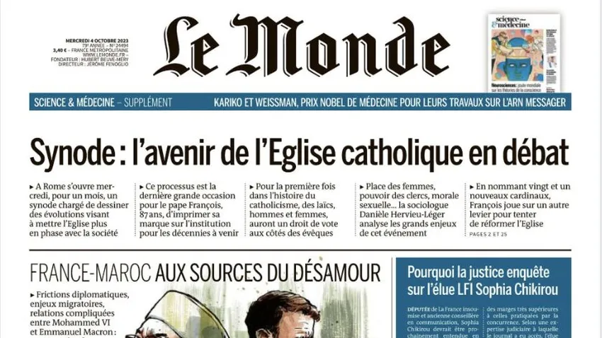 En otra columna señala que, por primera vez en la historia del catolicismo, laicos, varones y mujeres, tienen derecho a votar con los obispos. En la anteúltima de las columnas adelanta algunos de los asuntos que se van a tratar y que el periódico aborda en sus páginas interiores, con la ayuda de la socióloga de la religión, Danièle Hervieu-Léger: el lugar de las mujeres en la Iglesia, el poder de la jerarquía, la moral sexual, etc. Finalmente, apunta que Francisco, habiendo nombrado el pasado sábado, 30 de septiembre, 21 nuevos cardenales, está tratando de reformar la Iglesia en otra institución capital: el colegio cardenalicio.
