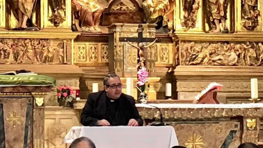 Acto seguido pudimos disfrutar de una conferencia titulada: “Este es el tiempo de la misericordia. Claves del Diario de Santa Faustina”, pronunciada por D. Estanislao Martín Rincón. Tres claves estructurales. “Primera clave: Dios, Uno y Trino. En el Diario se habla sobre todo de Dios. Segunda clave: el hombre espiritual. Aunque términos como hombre, ser humano, persona humana y género humano, no tienen una frecuencia muy alta en el diario, si se ponen junto a los de alma, espíritu humano y corazón (como centro de la persona) vemos que se sitúan en segundo lugar, tras las referencias a Dios. Tercera clave: El bien. Se evidencia fácilmente que el Diario de santa Faustina está escrito en clave de bien. Santa Faustina usa sobre todo palabras de salvación: Dios, misericordia, amor, etc., quedando muy lejos sus opuestas.” Terminada la conferencia celebramos juntos la eucaristía que presidió el Sr. Obispo emérito de Ponce (Puerto Rico), natural de Logroño. Excmo. y Rvdmo. Sr. D. Félix Lázaro Martínez, Sch.P. Por la noche tuvimos Hora santa.