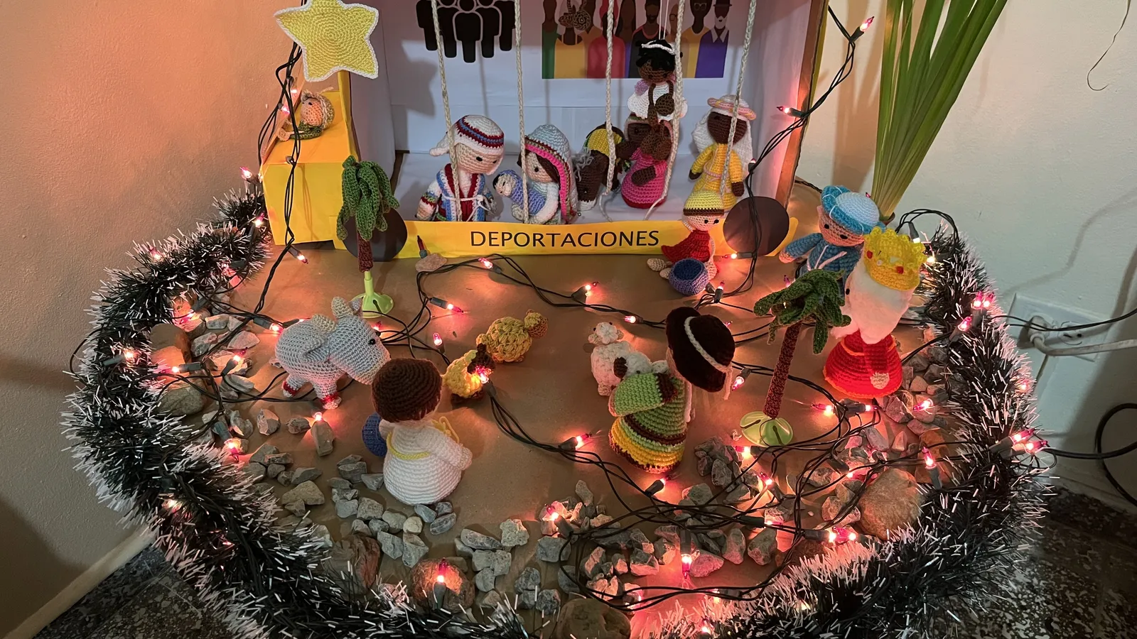 "Las Misioneras Dominicas del Rosario denuncian proféticamente el rechazo a los emigrantes. En el Nacimiento de su Comunidad de El Seibo está la camiona con el siguiente texto"