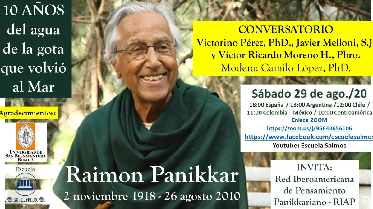 Webinar sobre Pánikkar: Sábado 29 de agosto, 18:00 hrs España, 13:hrs Argentina. 11:00hrs Colombia y México; 10:hrs Centroamérica: vía Zoom, Facebook y Youtube