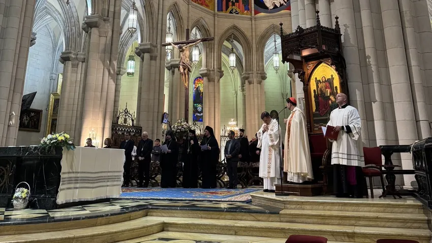 "José Cobo, el Cardenal, está en la Catedral, que está repleta y llenísima, y está rezando con toda la gente de buena voluntad que ha decidido venir. Ojalá que seamos capaces de construir la paz"