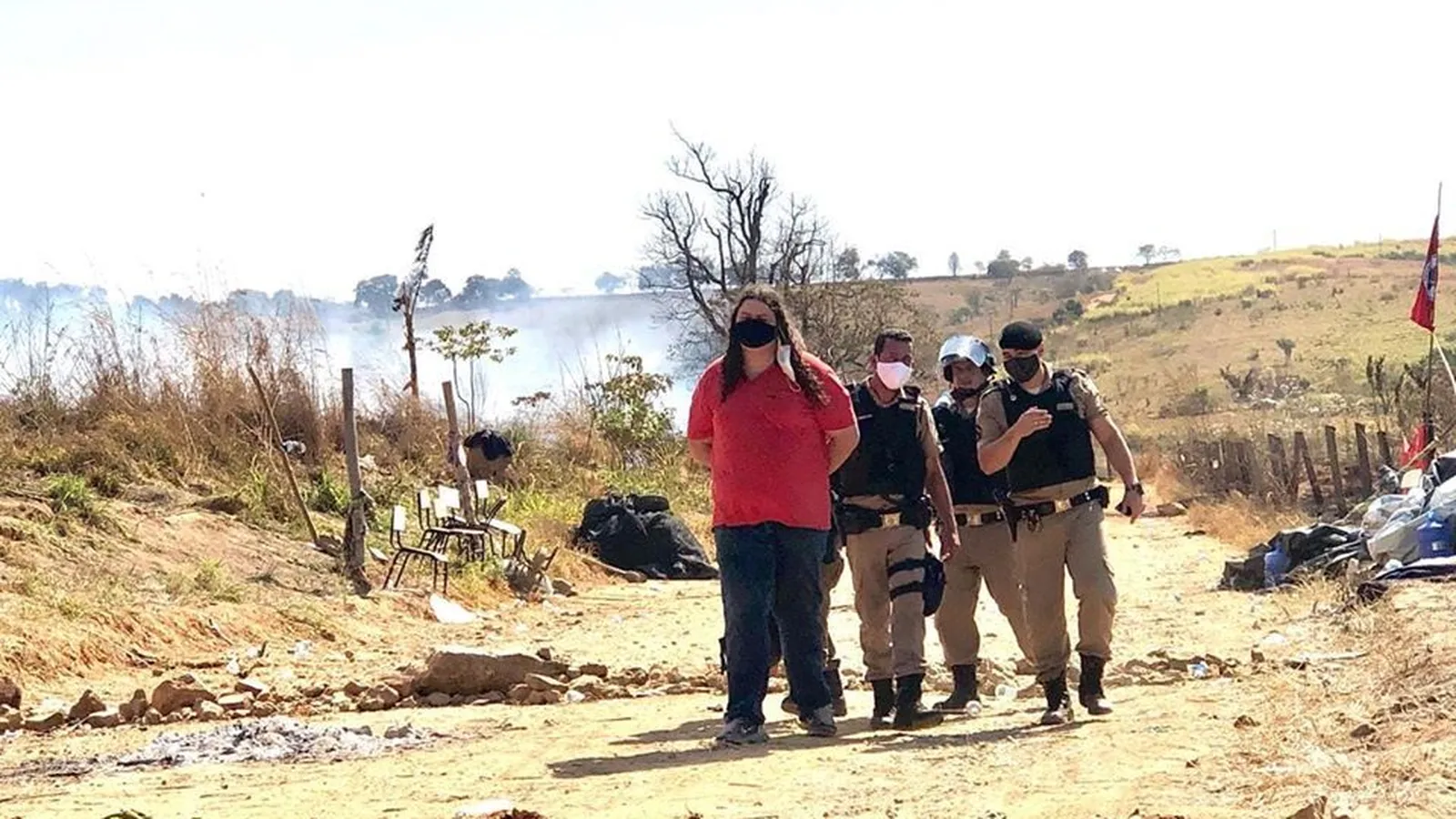 Protestan "por el acoso, desalojo violento, destrucción de cultivos y de la Escuela Popular Eduardo Galeano, por parte de la Policía Militar, del judiciario y del gobierno de Romeu Zema"