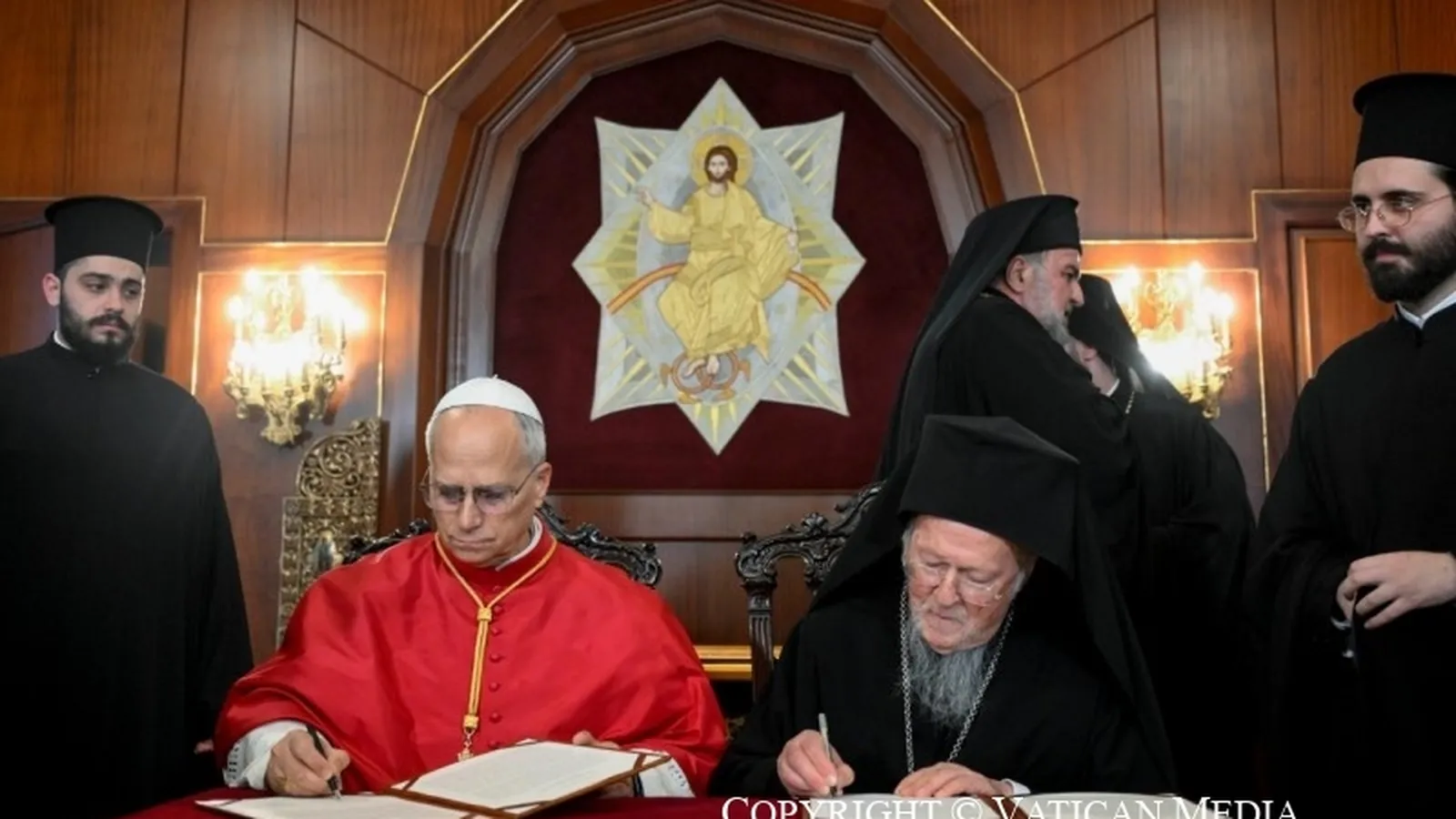 El papa León XIV y el patriarca de Constantinopla, Bartolomé I, firmaron este sábado una declaración conjunta "alarmados por la situación internacional" para invocar la paz en el mundo y que se haga todo lo posible para que cesen las guerras, en el tercer día de visita del pontífice a Turquía.