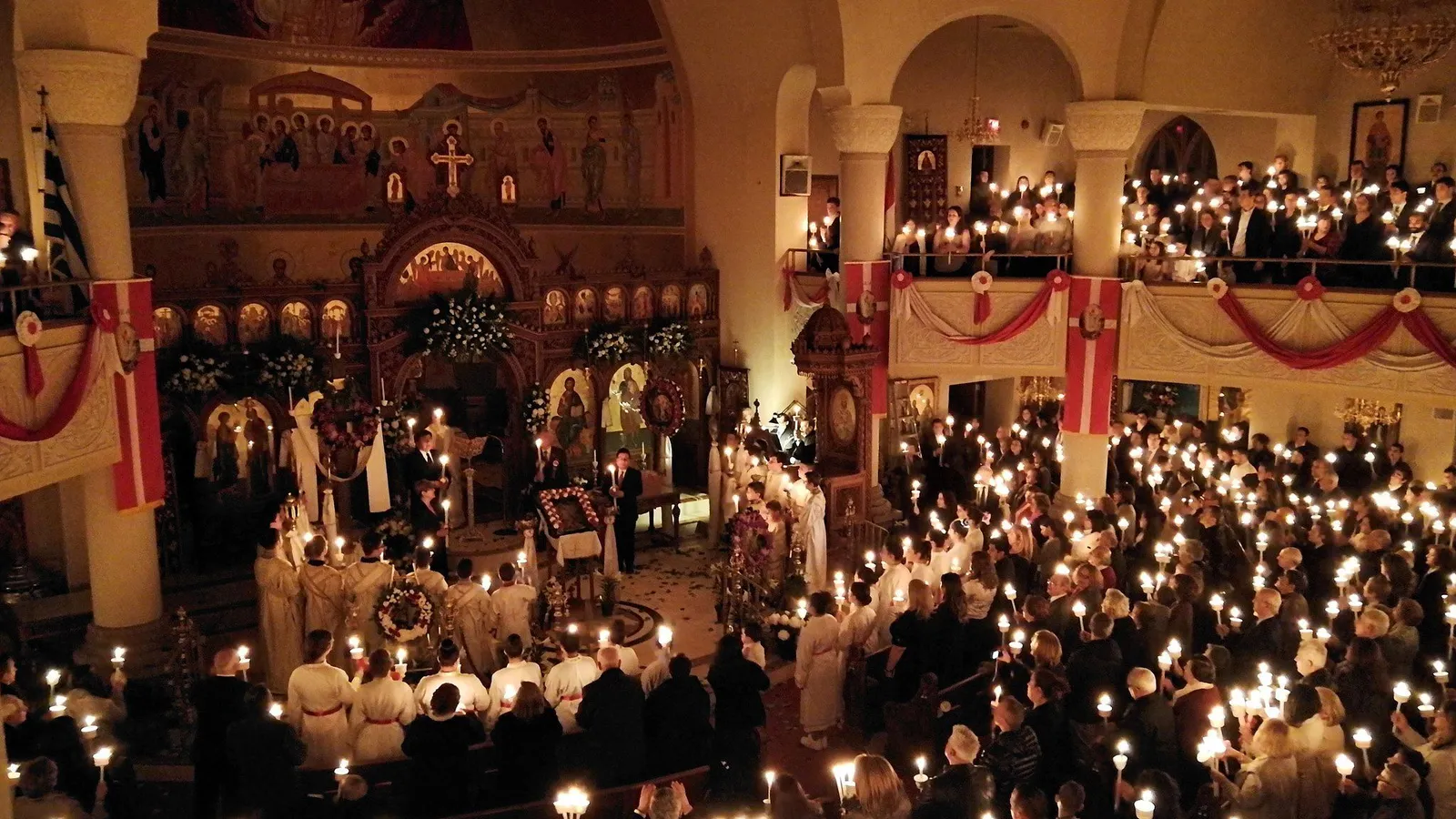 En Grecia es costumbre que los creyentes se reúnan el Sábado Santo por la noche en las iglesias de todo el país para celebrar la vuelta a la vida de Jesucristo nada más comenzar el Domingo de Resurrección.
