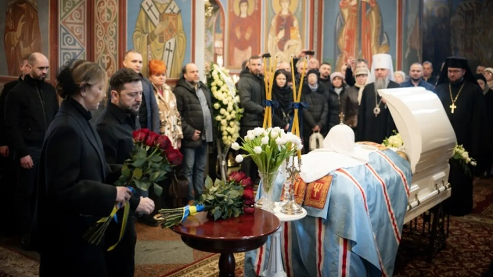 El presidente ucraniano y su esposa asistieron a la ceremonia de despedida del histórico patriarca en la Catedral de San Miguel de las Cúpulas Doradas en Kiev: "Recordamos. Honramos. Agradecemos"