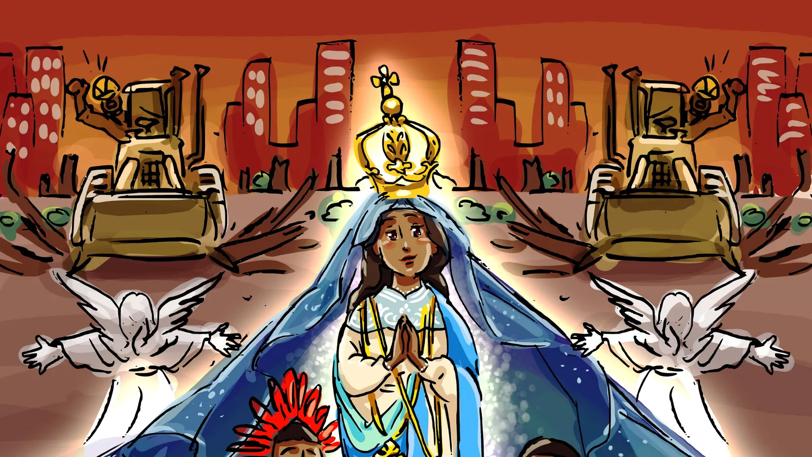 Querida Madre de Aparecida, hoy te elevamos nuestra oración para que intercedas por nuestros pueblos hermanos nativos de la Amazonia en Brasil. Muéstrales el rostro misericordioso de Cristo y protégelos de la amenaza de perder su lugar y sus recursos a causa del abuso de los recursos naturales de nuestra casa común. Concédenos a todos la gracia de sabernos hijos amados de Dios, que nos ha engendrado en esta Casa Común y que con este don también nos llama al compromiso de cuidarla y compartir todo con todos, sin que nuestras acciones tengan que perjudicar a nadie. Te ecomendamos a todos los pueblos nativos de Brasil, para que puedan vivir en paz y que puedan reconocer en nosotros un signo de la Misericordia Dios Padre, la paz de Jesucristo y el amor del Santo Espíritu. Amén