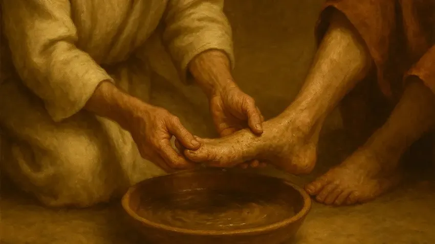 De tan asombroso testamento la tradición nos ha dejado otra versión: “Cuando acabó de lavarles los pies, tomó el manto, se lo puso otra vez, y les dijo: «¿Comprendéis lo que he hecho con vosotros? Vosotros me llamáis Maestro y Señor, y decís bien, porque lo soy. Pues, si yo, el Maestro y el Señor, os he lavado los pies, también vosotros debéis lavaros los pies unos a otros: os he dado ejemplo, para que lo que yo he hecho con vosotros, también vosotros lo hagáis»”.
