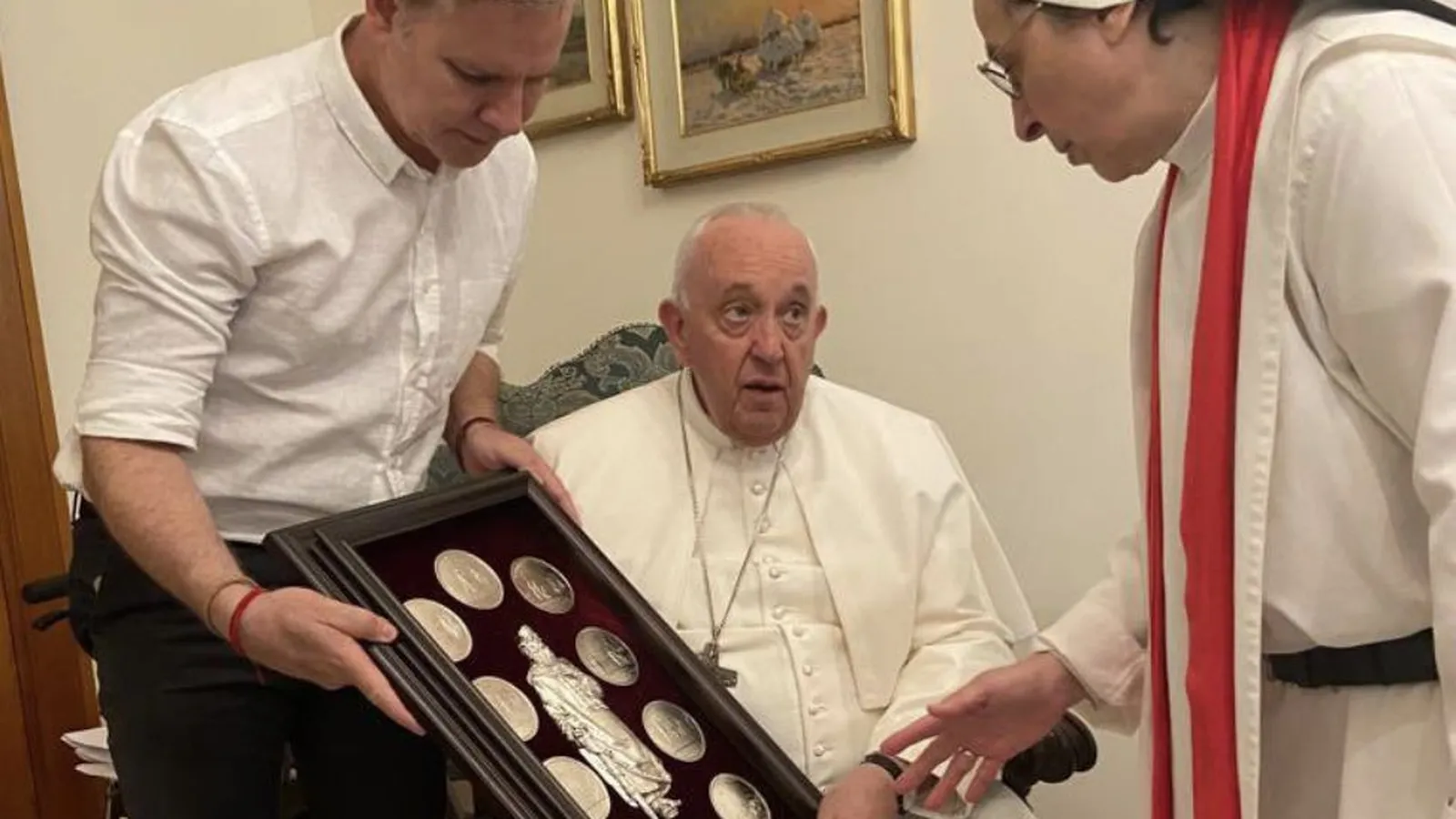 Llevaba al Papa un regalo del Gobierno de Ucrania y le vi impactado por la realidad del país y emocionado ante la imagen de San Volodimir, el bautizador de Ucrania, cuya imagen reproducía este cuadro. Escuchaba con atención los relatos y quería conocer la experiencia de los corredores humanitarios, de las familias, de cada detalle. Y sólo repetía “qué lindo lo que hacen”, “no los dejen”, “no dejen de ayudarlos”, “es muy injusto lo que viven”.