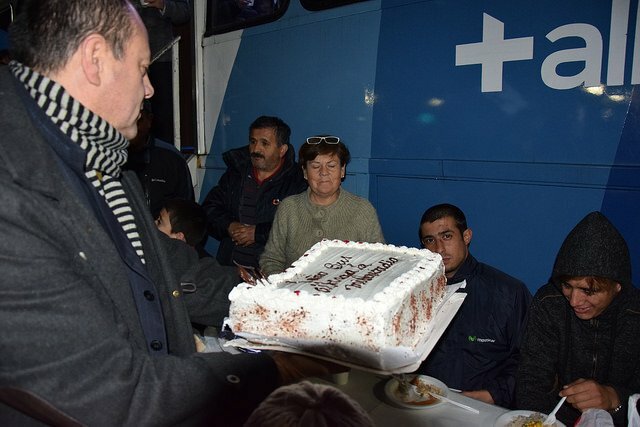 Por otro lado, el martes 15 de mayo, a partir de las 22:30 horas, se celebró el primer año del Albergue, ocasión en que los usuarios compartieron una rica y cálida cena, además, de otros alimentos preparados y servidos por personas de solidarias. La celebración culminó con una torta, en que todos cantaron "cumpleaños feliz Albergue Móvil".