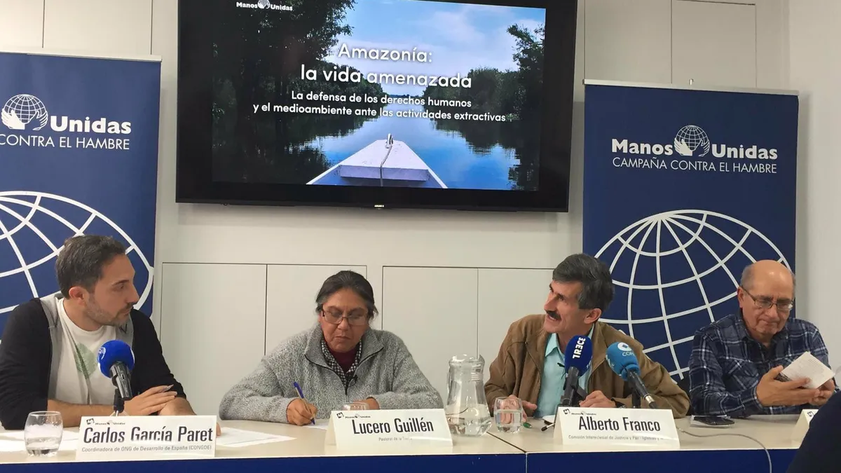En la mesa ‘Amazonía. La vida amenazada’, de Manos Unidas, junto a otros activistas