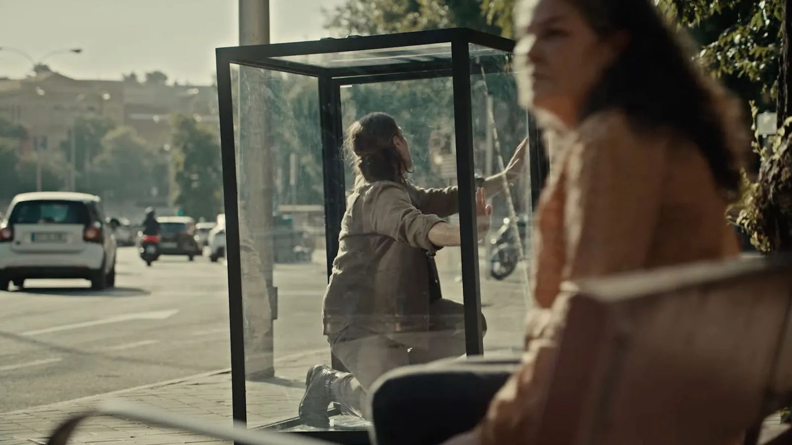 (Iglesia en Aragón).- Un hombre golpea los cristales de una cabina transparente mientras la gente pasa a su lado sin mirar. Grita, suplica, se desespera. Nadie se detiene. La escena parece sacada de un sueño febril, pero no lo es. Es España en 2025, filmada por Iñaki Mercero con la misma crudeza simbólica con que su padre, Antonio Mercero, retrató hace más de medio siglo la incomunicación de una sociedad en La cabina (1972).