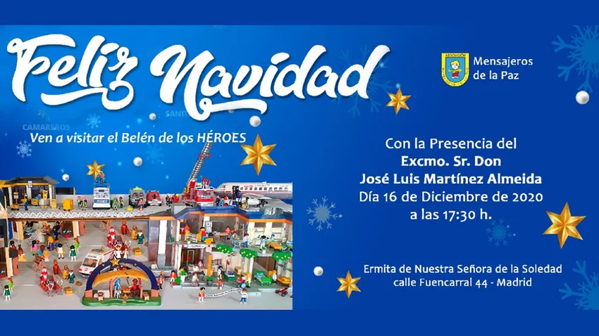 Mañana, 16 de diciembre, se inaugura el Belén de Mensajeros de la Paz que rinde homenaje a todos los héroes anónimos que este año han luchado para que todos estemos juntos y rememos en la misma dirección para combatir la pandemia. El Belén de los Héroes será inaugurado por el Alcalde de Madrid, Jose Luis Martínez-Almeida que acompañará al padre Ángel en la ermita de La Soledad.