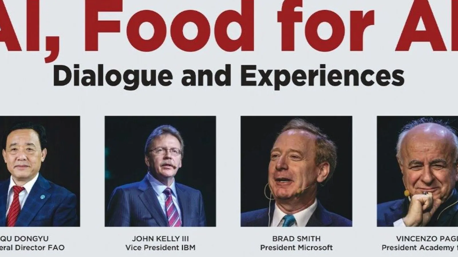 Reanudaremos el diálogo con el Presidente de Microsoft, Brad Smith, el Vicepresidente de Ibm John Kelly II, y el Director General de la FAO Qu Dongyu. El tema será la comida y la inteligencia artificial. En efecto, la maldición del hambre es un pozo sin fondo de dolor donde incluso el misterio de Dios permanece enredado, donde la vida humana está expuesta a su límite biológico y a la violencia del pecado. Desde que el suministro de alimentos para todo el planeta se ha vuelto científica y técnicamente sostenible, nuestras estadísticas se han vuelto desafortunadamente insostenibles. Hay demasiada gente que no puede sentarse en esta mesa común en nuestro planeta, y ya no es soportable.