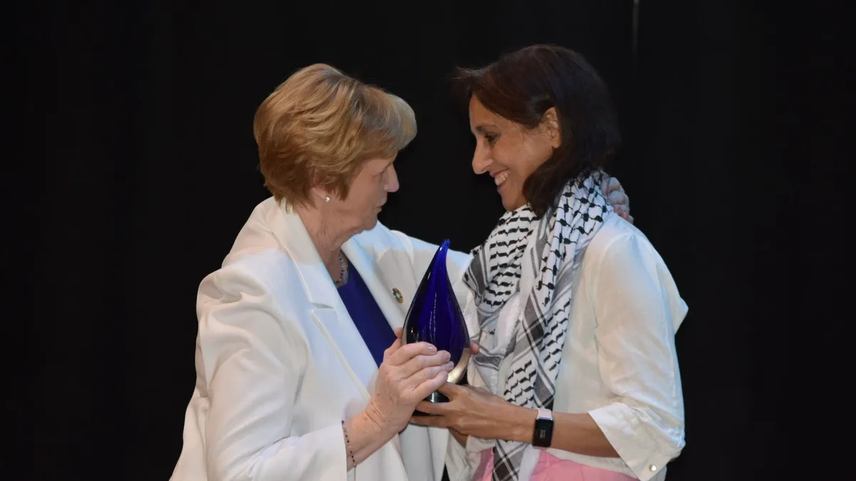 La fundadora de la ONG Caminando Fronteras, recibe el Premio “Mujer de Coraje” de manos de la directora ejecutiva de UNANIMA Internacional, la irlandesa Jean Quinn, que representa ante la ONU a 25 congregaciones religiosas femeninas