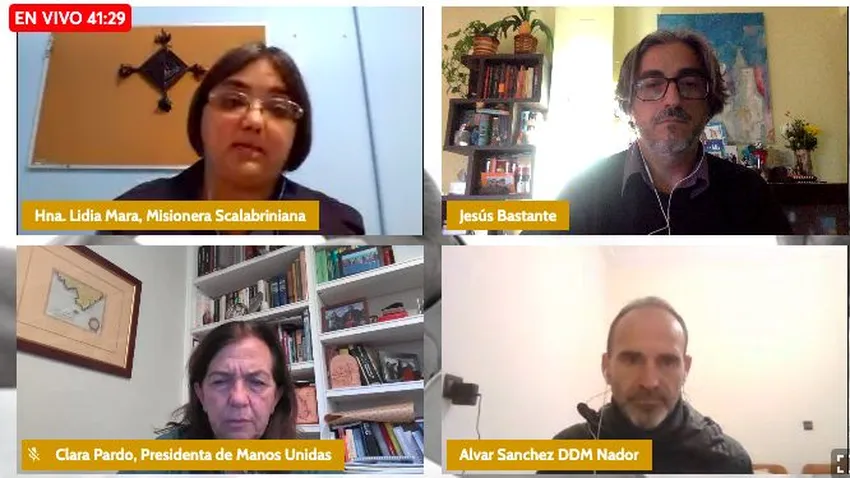 Con el apoyo incondicional de Instituciones Religiosas del Banco Sabadell y la colaboración técnica de Católicos en Red, ayer mantuvimos un vibrante coloquio con la presidenta de Manos Unidas, Clara Pardo; y con dos 'apóstoles' de la acogida en dos de las fronteras más terribles de nuestra época: la frontera sur, con Álvar Sánchez, Promotor de proyectos de la Delegación Diocesana de Migraciones de Nador; y el doble paso a, y desde, México, hacia el sueño americano, con la hermana Lidia Mara Silva de Souza, directora del servicio Migrantes y Refugiados de las Escalabrinianas en México.