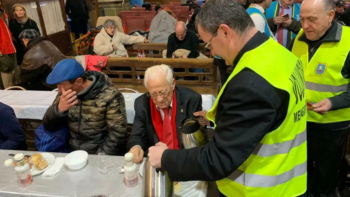 El obispo Montoya, que acudió con el párroco de San Ildefonso, el padre Pedro Luis, repartió el desayuno a las personas sin hogar que acuden diariamente a la iglesia de San Antón. Después escuchó con atención tanto los comentarios de pastoral como los que le ofrecieron los responsables de Mensajeros sobre voluntariado y acción socialice se llevan a cabo desde la ONG.