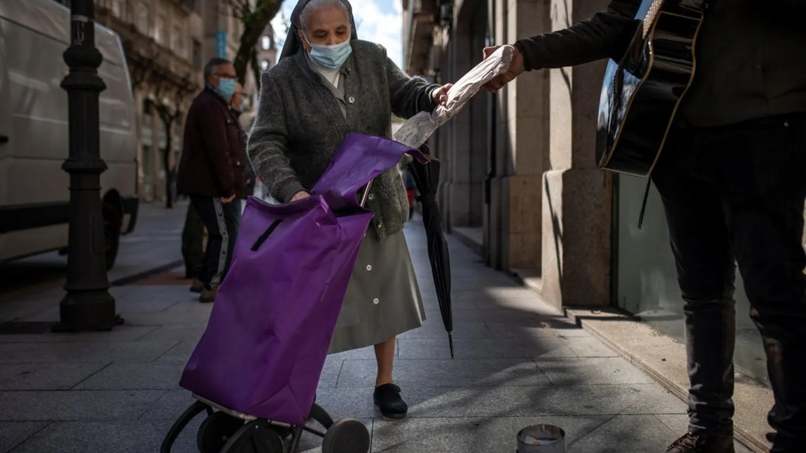 Los efectos de las vacas flacas también se han dejado notar en las limosnas. "Hay días en que se saca muy poco. Si antes tenías bastante para pasar el día, ahora no llega", apunta este señor. Desde que comenzó la pandemia, las colas del hambre se han disparado no sólo en Orense sino también en el resto de ciudades gallegas y en España.Tan sólo en el último año, Cruz Roja ha atendido a más de tres millones de personas, más de 111.000 en el caso de Galicia.