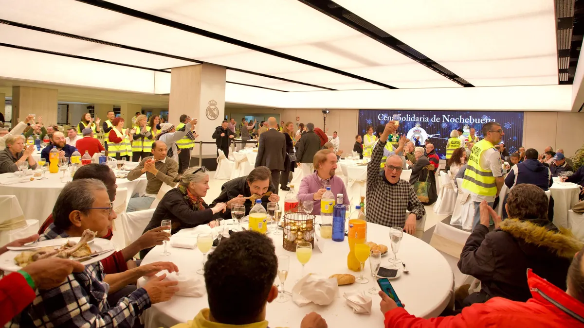 Por primera vez la tradicional Cena de Nochebuena organizada por el Padre Ángel y Mensajeros de la Paz se ha celebrado en el icónico estadio Santiago Bernabéu, gracias al apoyo del Real Madrid C.F. Una colaboración que nace del compromiso de ambas organizaciones con las personas sin hogar de la ciudad de Madrid en una fecha tan señalada.