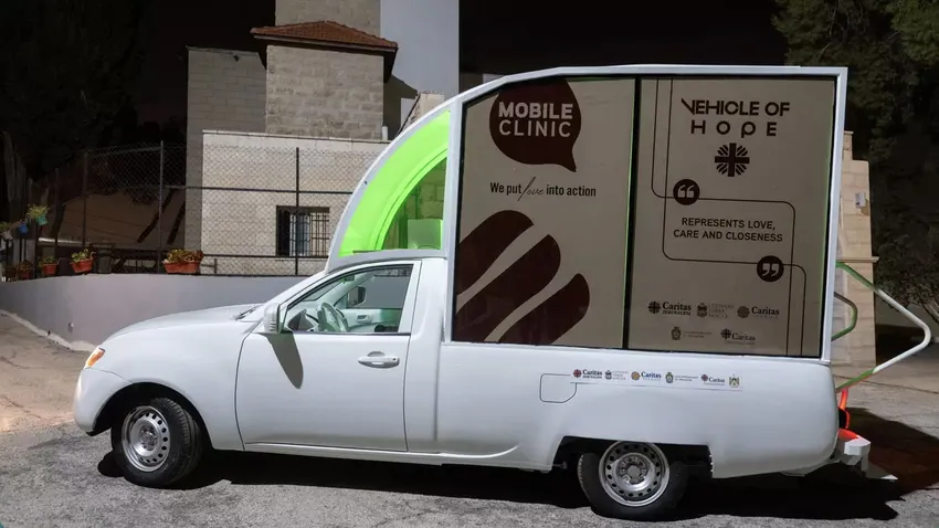 El papamóvil, utilizado por el papa Francisco durante su visita a Belén en 2014, fue equipado con equipo médico y donado a Cáritas Jerusalén, y convertido en clínica es un "símbolo de compasión, innovación y compromiso compartido de la familia global de Caritas", destacaran desde la institución.